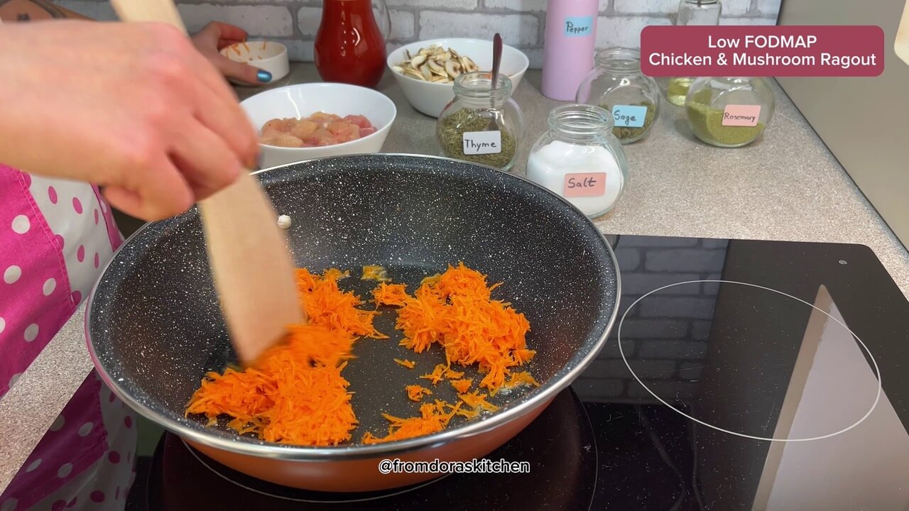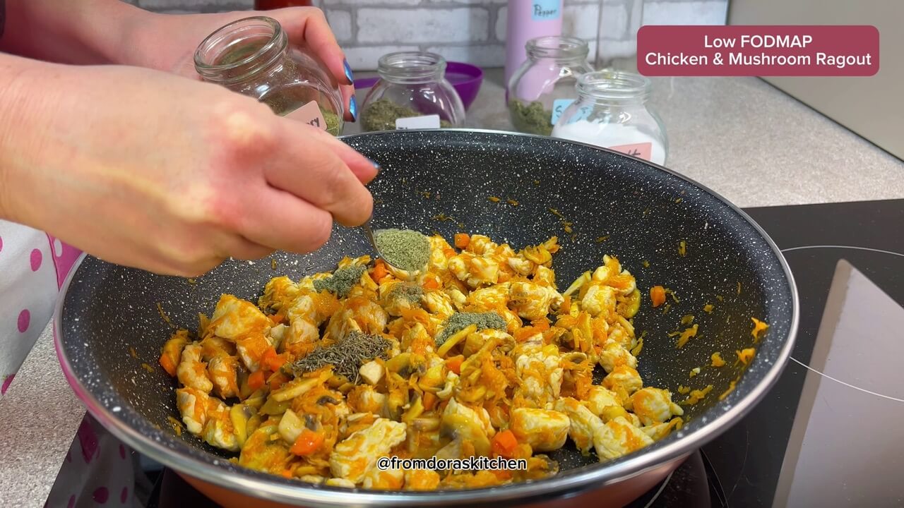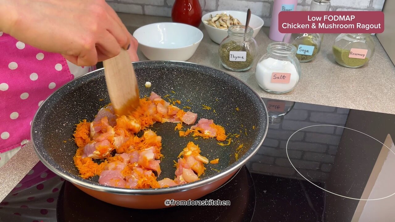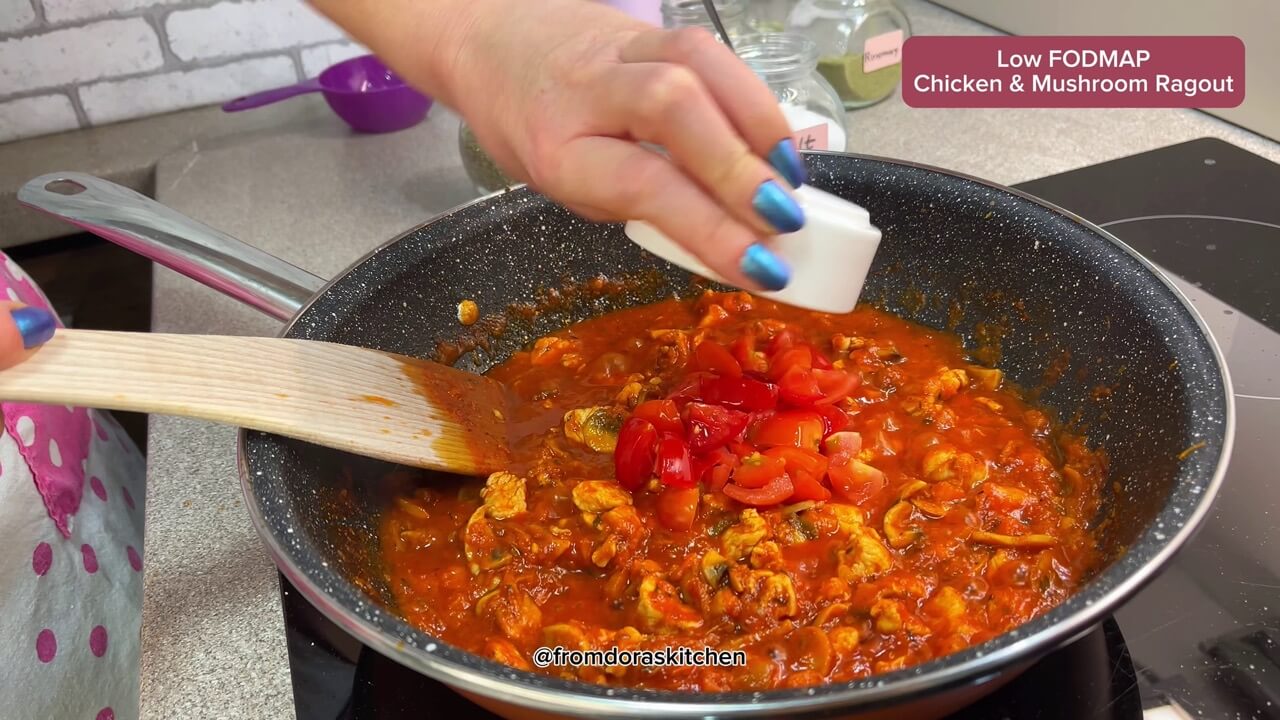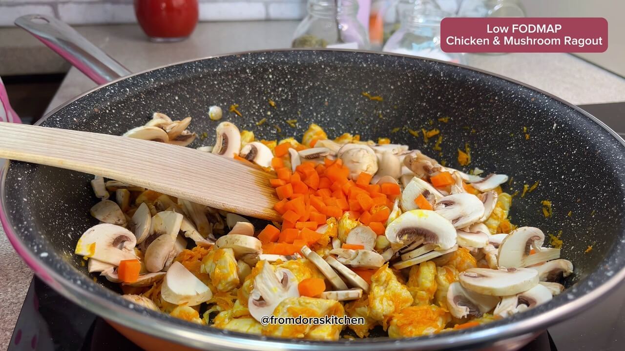 - Add cooked pasta to the LOW FODMAP Chicken & Mushroom ragout and toss gently to combine it with the sauce.