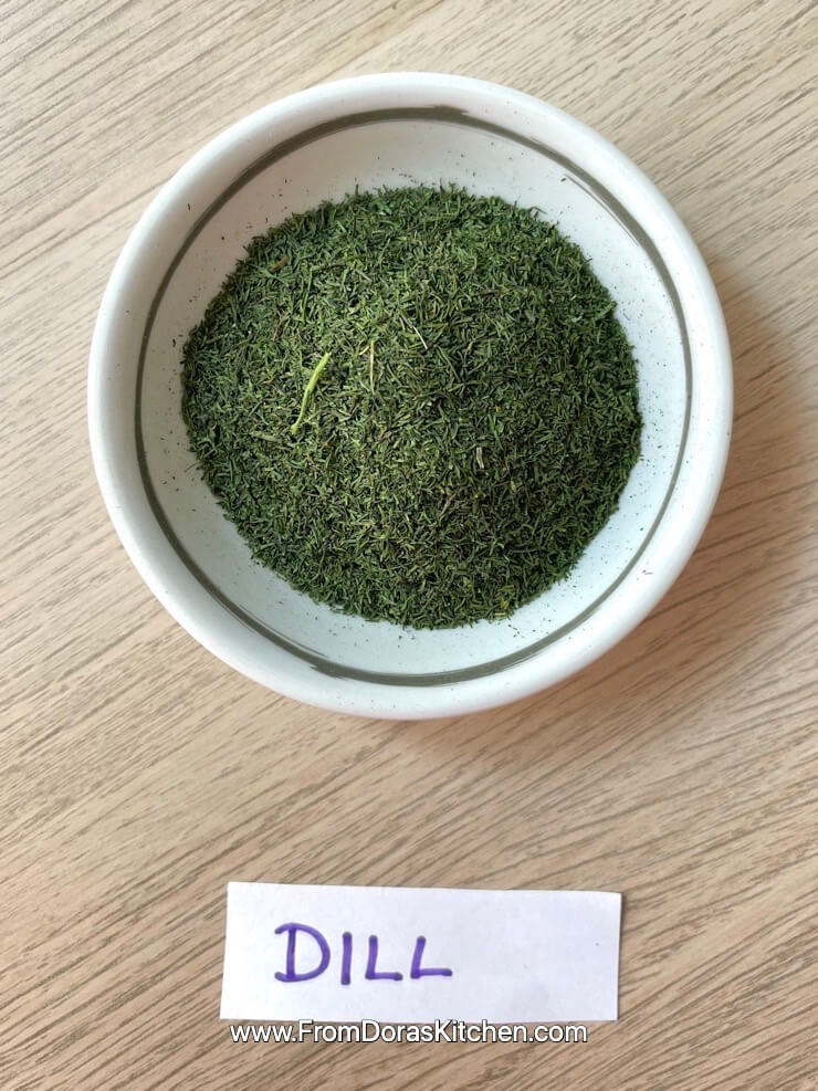 Dry dill weed is a herb that I discovered a bit more than two years ago, and I have become a big fan of it. Dill has a grassy and slightly tangy flavor. I love using dry dill weed in salad dressing, meatballs, and as a spice for pasta dishes.