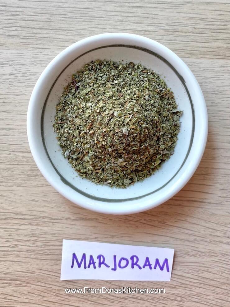 Did you know that in Greek mythology, Marjoram was cultivated by the goddess Aphrodite? She was a goddess of love and beauty. Maybe she was growing Marjoram because it has a milder and more delicate flavor than oregano and thyme, and on the other hand, Marjoram has a stronger scent. Marjoram has a warm and slightly sharp flavor that pairs wonderfully with tomato-based dishes, salad dressings, and meat dishes. I love seasoning poultry with Marjoram.