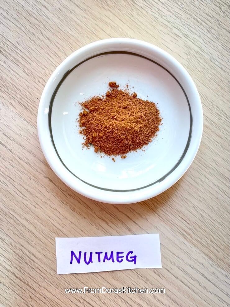 Nutmeg is a very powerful spice, where you need a pinch to bring flavor to the meal. It has a warm and nutty flavor, so it pairs well with most meals. Nutmeg is a seed, so if you have a nut allergy, you can still enjoy nutmeg in your meals. In the shops, you can find whole nutmeg and ground nutmeg, and the only difference is that whole nutmeg is a bit stronger because you will freshly grate it in the meal. So, if you are grating the nutmeg to the meal, use a bit less than store-bought ground nutmeg. I prefer ground nutmeg because it is easier to cook with it, and I can better control how much I put it in the meal. I would usually add nutmeg to the meatballs or pasta sauces.
