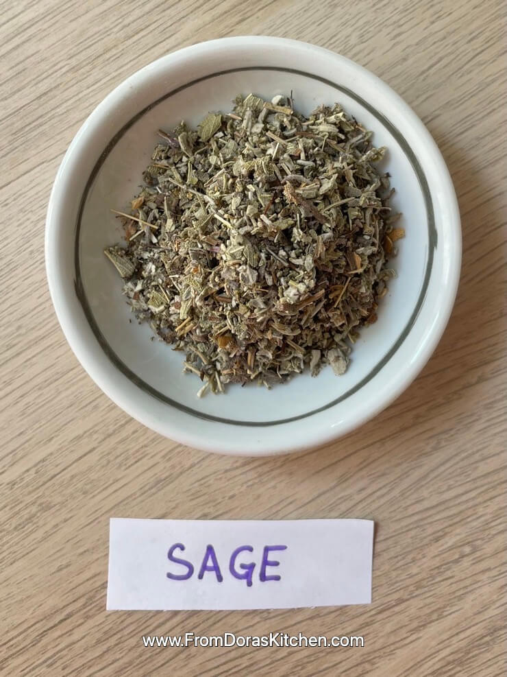 Before, when I heard the word sage, it immediately reminded me of tea. I didnโt think that you could cook with sage, and that it could be so good. Dry sage has an earthy, sweet yet savory flavor that pairs well with heavy meals, pasta sauces, and savory fruit sauces. At the moment, I think my favorite way to use dry sage is in Blueberry sauce that is served with pork chops. In this meal, dry sage elevates the flavors and combines with the flavors of the sauce with pork chops.